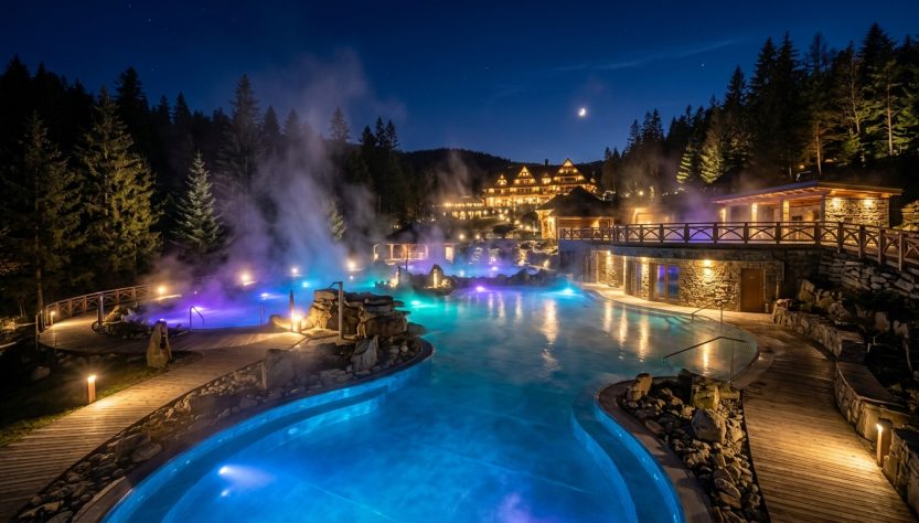 Kiedy dzień powoli dobiega końca, a słońce zaczyna chylić się ku zachodowi nad tatrzańskimi szczytami, w Termach BUKOVINA rozpoczyna się prawdziwa magia. To moment, gdy kompleks nabiera wyjątkowego, niemal mistycznego charakteru, oferując swoim gościom doświadczenie, którego nie da się porównać z żadną inną porą dnia. Wieczorne godziny w termach to czas, gdy natura, architektura i ciepło geotermalne łączą się w harmonijną całość, tworząc przestrzeń idealną do głębokiego relaksu i regeneracji.